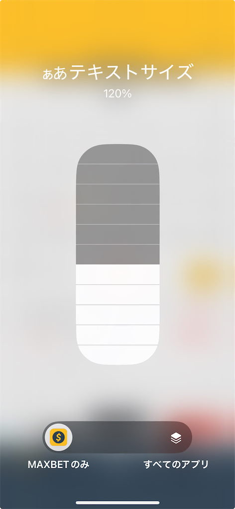 アプリを開いた状態でコントロールセンターを開き、"テキストサイズ"を選択して、そのアプリ専用のテキストサイズを調整します。
